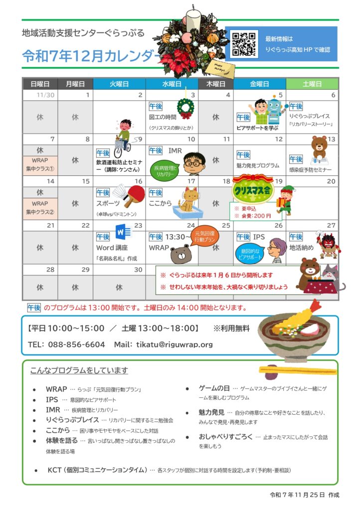 地活ぐらっぷる12月の予定表(2025.12月カレンダー)