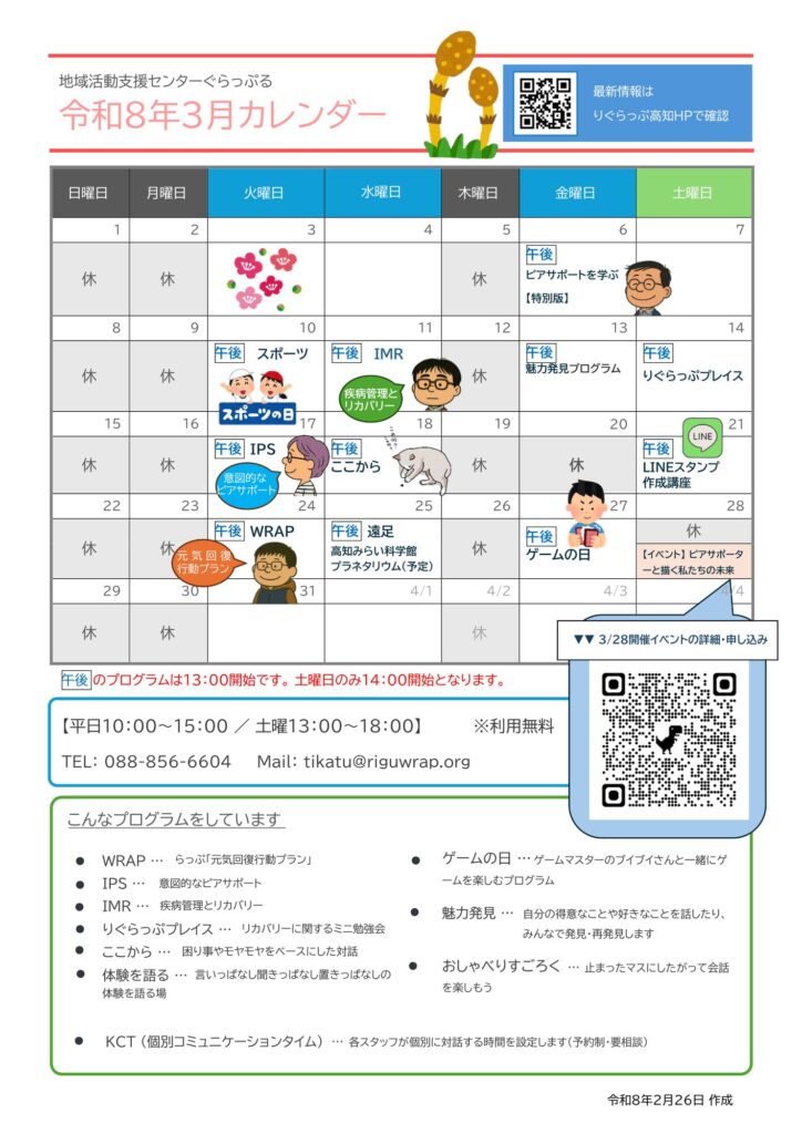 お待たせいたしました!地活ぐらっぷる、3月のカレンダーをお届けします。