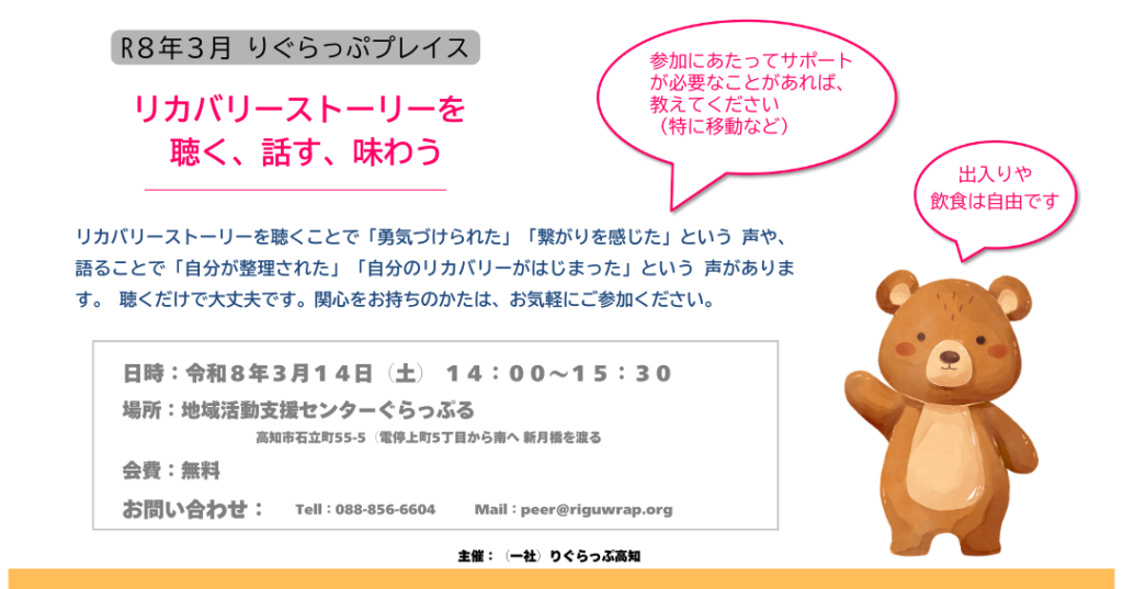 りぐらっぷ高知では、毎月「りぐらっぷプレイス」を開催しています。